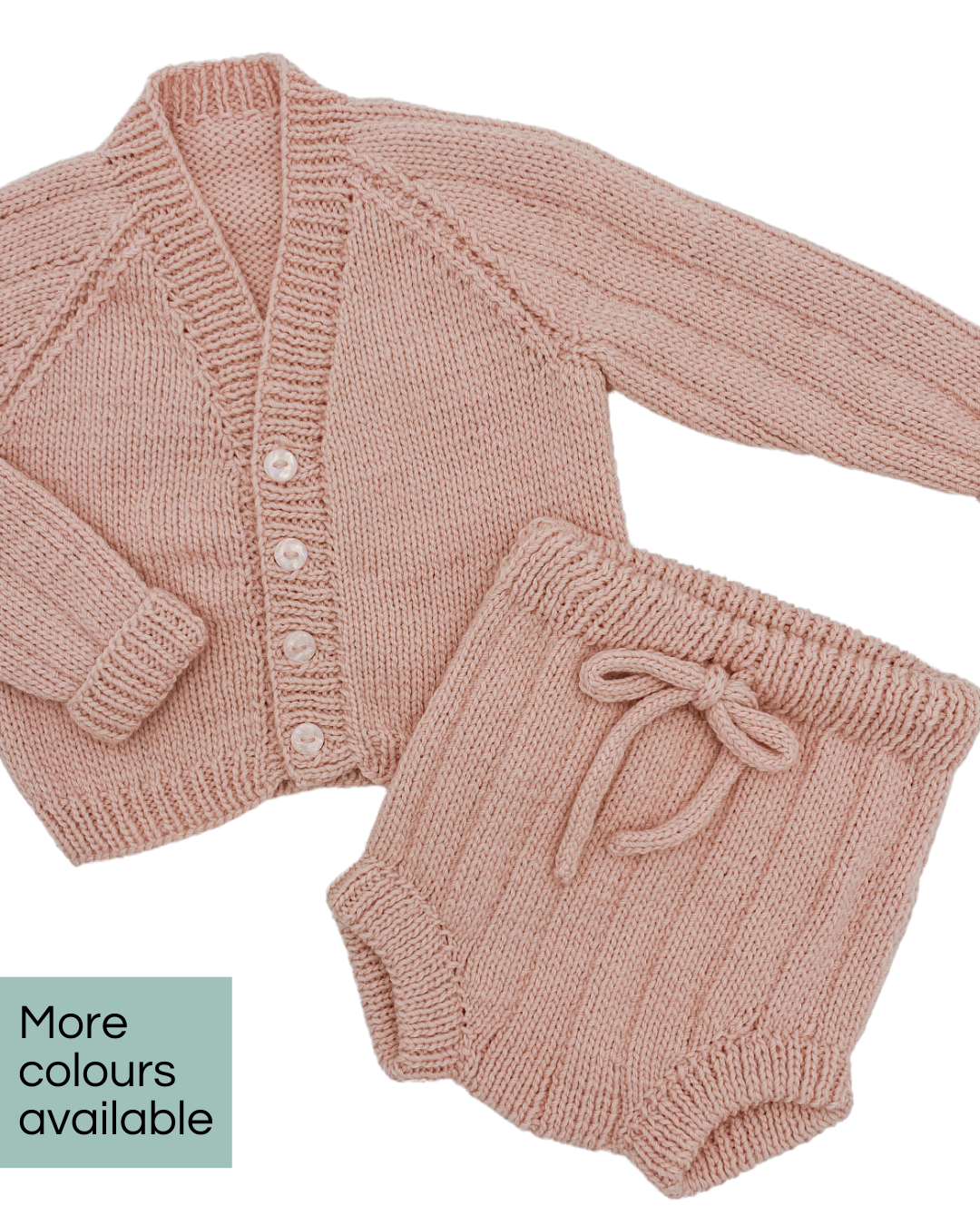 A pair of hand knitted knickers? What could be cuter? Oh, how about when they're paired with a co-ordinating cardi? Our best-selling knitted two piece, The Molly Set makes a gorgeous addition to baby's first wardrobe.