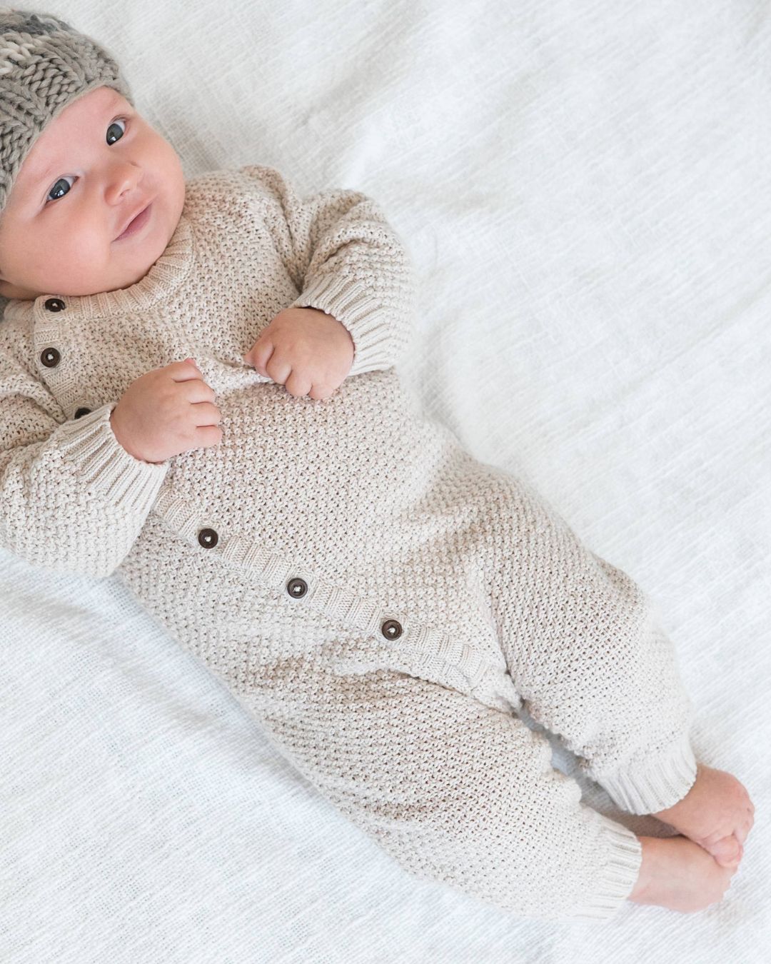 The Roscoe Romper is a cosy autumn essential, designed to keep your little one wrapped in comfort. Crafted in a beautiful seed stitch knit from 100% organic cotton, it features a wrap-style kimono front with cute button closures. Whether layered up for chilly strolls or worn solo indoors, it’s a timeless piece made for baby’s first autumn and winter adventures.