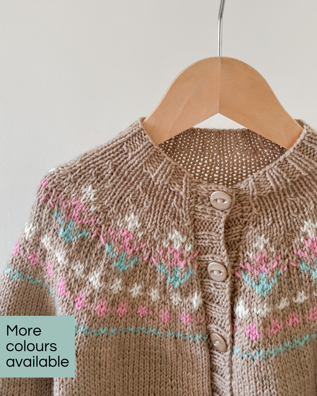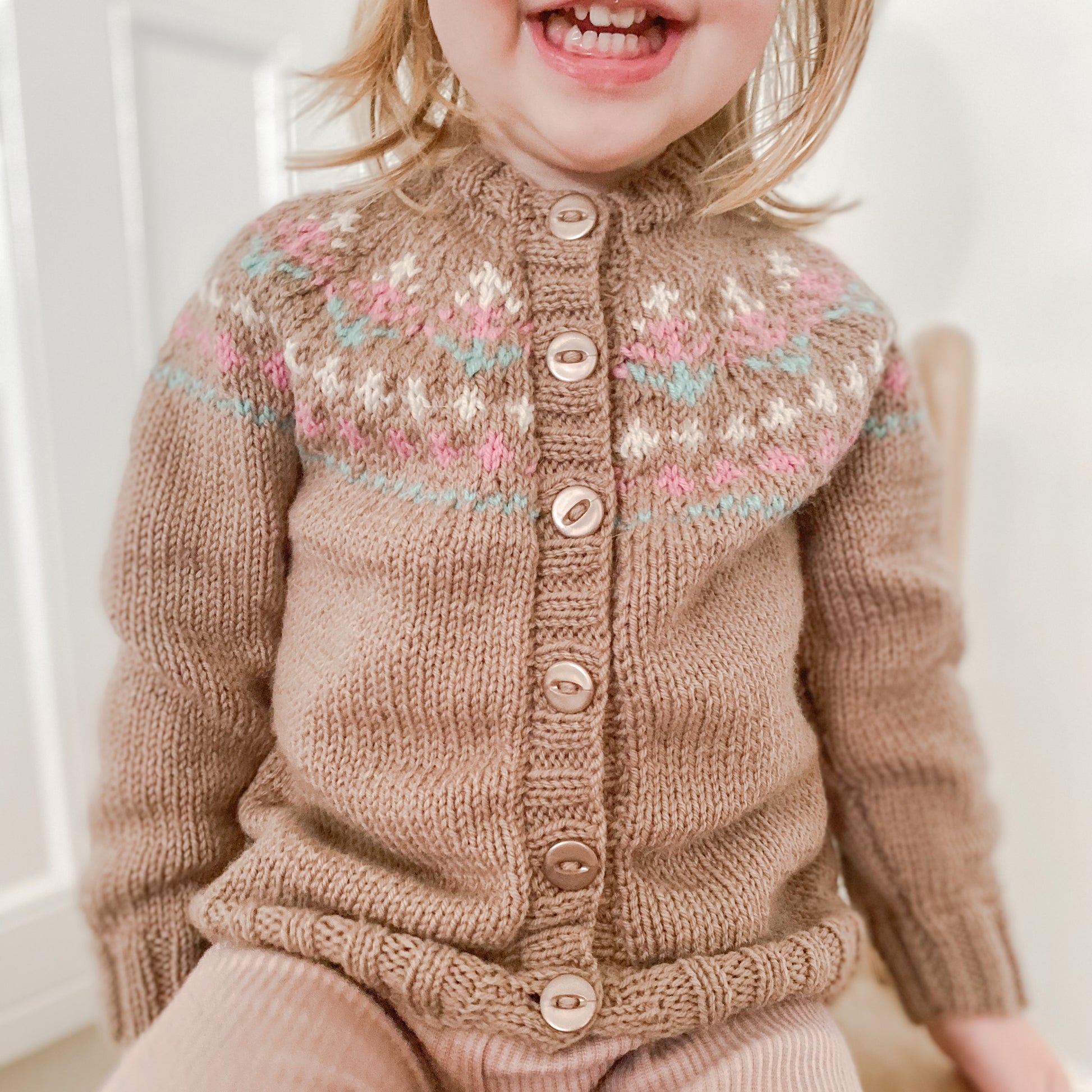The Wren Cardi, made with love to keep 'em cosy. Isn't she a beauty?
